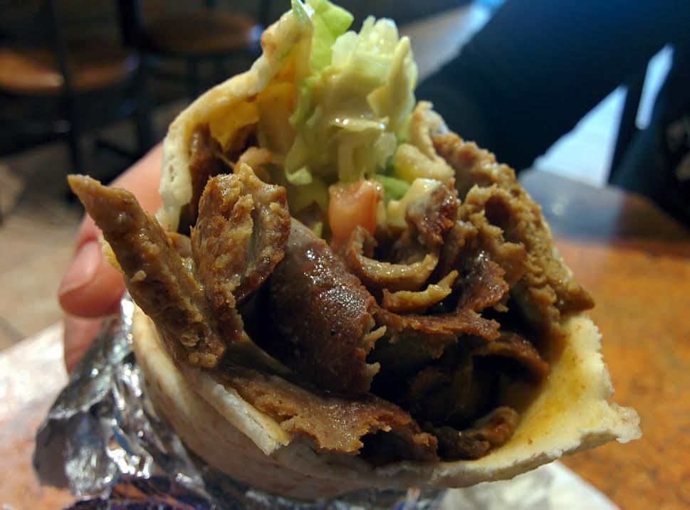 Donairs can be found almost everywhere in Edmonton, Alberta. A steamed pita bread wraps spicy meat, lettuce, tomato, cheese onions, and more.